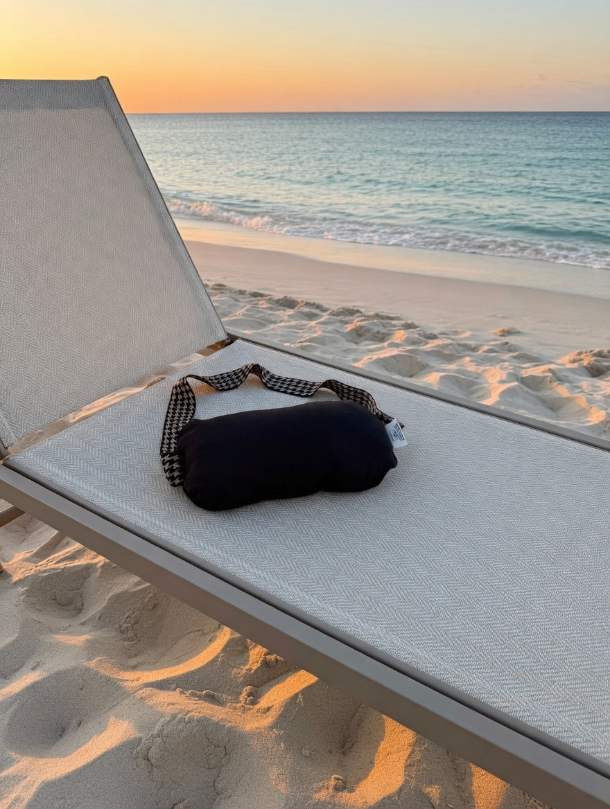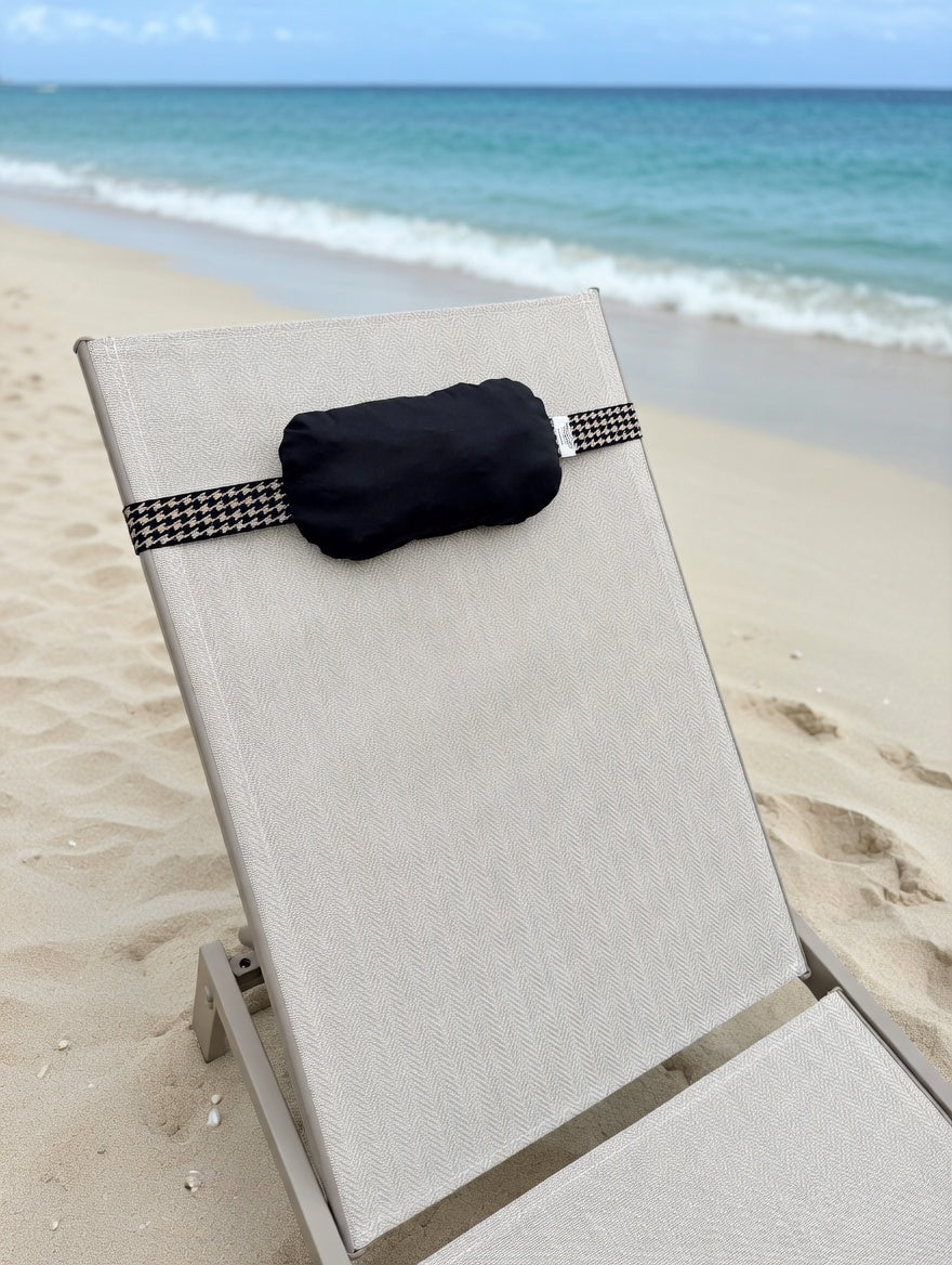 Ervaar ultiem comfort met een vleugje elegantie met de Beachcloud Santorini. Het zwarte katoenen kussen gecombineerd met de chique zwart-gouden pied-de-poule elastieken band geeft je ligbed een tijdloze en stijlvolle uitstraling. Handgemaakt en zorgvuldig afgewerkt, blijft de Santorini dankzij het stevige elastiek perfect op zijn plek. Ideaal voor een luxe dag op het strand, bij het zwembad of een ontspannen moment in je tuin.